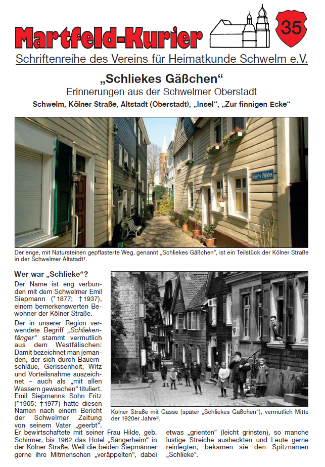 Titel Heft Nr 35: "Schliekes Gäßchen" - Erinnerungen aus der Schwelmer Oberstadt