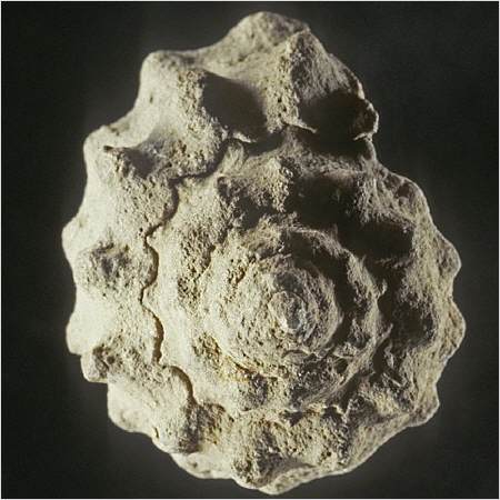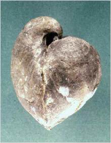 Foto rechts: Brachiopode Stringocephalus sp.; Höhe 7 cm, Fundort: Schwelm, Aufbewahrung: Museum Haus Martfeld, Schwelm (Foto: Lutz Koch, http://www.l-koch.de/galerie-f/s2.htm