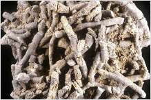 Foto links: Ästige Stromatopore Amphipora sp., Bildbreite 12 cm; Lutz Koch, Galerie "Fossilien aus dem Schwelm-Kalk", http://www.l-koch.de/galerie-f/s6.htm