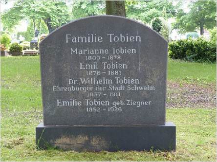 Dr. Wilhelm Tobien war mit Emilie Ziegner (1852-1926) verheiratet. Viele Jahre wohnten sie in einem Schieferhaus in der oberen Schulstraße, Ecke Bismarckstraße. 1869 wurde er Oberlehrer an der höheren Bürgerschule in Schwelm. Er gründete 1872 die Volksbibliothek – die heutige Stadtbücherei, 1874 folgte der Bildungsverein. Von 1892 bis 1904 war er Direktor des Realprogymnasiums.