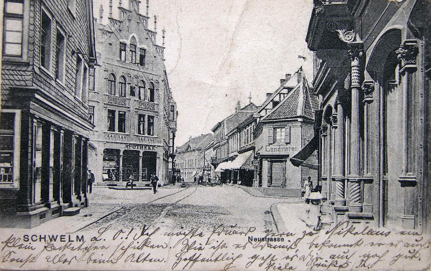 Bildpostkarte Schwelm,"Neustraße", 1903. Rechts das Wohn- und Geschäftshaus Max Klein, Ostenstr. 1 und 2.